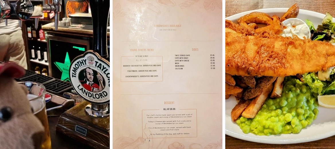The pub on entry was bar to the right, more of a dining area to the left. We were greeted by a lovely lady who gave us a menu and took our drinks order, after a little while a gentlemen took our food order. The dining room is very well decorated and has a beautiful log fire. It wasn't long before the food came, and it did not disappoint ... the pie was beautifully cooked inside and out the mash was not my cup of tea but my partner liked it my mushy peas were what i can only describe as a childhood moment they were amazing and tasted how peas should unlike the watered down ones sold everywhere else. My gravy was lovely and thick. My partners cod was cooked so well it melted in your mouth. The chips are definitely the better option and are cooked so well!!! It's definitely worth the money. 100% recommended for anyone passing or local.