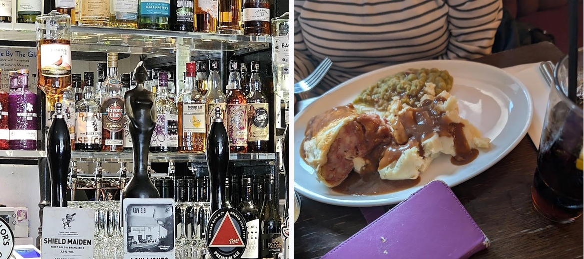 Great little pub very friendly staff and very helpful and welcoming. Great choice of drinks. Cheese Marconi was a good sized portion, the chips where fab. The cornbeef pie was filled to the brim of cornbeef and potato. Mushy peas where full of flavour. Steak and ale pie was full of steak and was amazing. All 4 of us gave it 5 stars. Couldn't complain about anything. It was nice and hot and generous portions all round. Definitely recommend this place for a meal. Nice open fireplace and a very traditional pub.