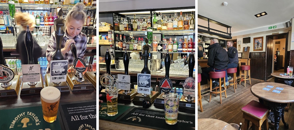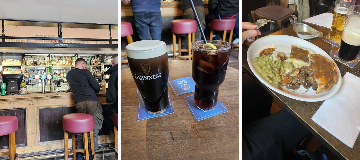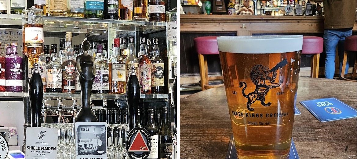 A super old pub retains lots of character. Once owned by the awful Scottish and Newcastle brewery. A Top pub, not a Low pub! Five real ales. Alic chose local N Shields brewery Three Kings. A good Pale Ale. Been to South Shields hundreds of times but only second visit to the North side. Booth loves this bar. Retains original character and serves super pies.